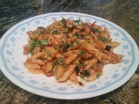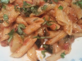 Italian cuisine is loved by all in our house and  I make ( or try!!!) Italian pasta with different sauces at home often. Last week, we were loaded with lots of fresh homegrown tomatoes, zucchinis, fresh basil given by our kind neighbour. So, I decided to make a tasty,creamy pasta sauce with these fresh homegrowns. The pasta was delicious with the side of  toasted fresh Jalapeno Olive Oil Bread.  Fresh basil leaves garnishing enhances the taste of the pasta dish definitely.