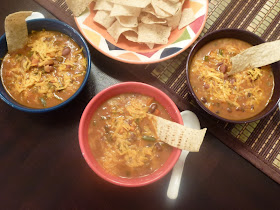 Garnish the Soup on its top with a layer of Shredded cheese, a round slice of jalapeno pepper and little greek yogurt. ( 1/4 tsp )