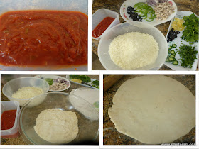 Pizza remains a magic word all the time to make the kids smile. Though we don't regularly dine at Pizza restaurants, I like the idea of making pizza start from scratch at home, even the Pizza Base. My love towards Italian Cuisine is very special and I have been trying out different pestos and experimenting various kinds of Pasta, Soups in my kitchen with my testers ( my family of course!!!) at home. Somehow, I decided to inject the Indian flavor and taste into this vegetable pizza this time. So I made the Pizza Sauce on Indian Style and built the Pizza according to our home taste. It came out very well and I assure you, my dear friends, its not a time consuming recipe at all if you have all the ingredients ready at one shot. Just prepare the Pizza Dough before 5-6 hours with the yeast and keep it ready. By the time the dough sets up, keep all the other ingredients required for making the Pizza like the Sauce, vegetables, black pepper powder, Mozzarella cheese,etc., ready. Its a wise decision to prepare the Pizza Sauce in advance and store it in an airtight container and in refrigerator for later use. We can surprise the kids by giving them a quick Mini Cheese Pizza or any favourite pizza of their choice as an after school snack if the Pizza Sauce is readily available.