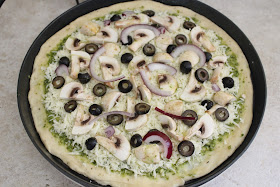 Knead the Pizza Dough by adding all the ingredients mentioned under the "Pizza Base". Cover the dough with a wet cloth and leave aside for 2-3 hours till the dough rises up.