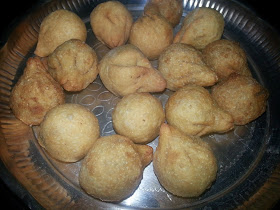 Make a thick dough using the above ingredients using little water. Consistency of the dough is very important otherwise the outer cover might crack while frying.