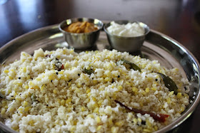 Biyyam Pesarapappu Upma is one of Andhra's tradiitional tiffin, which is made with lentils and broken rice steam cooked and tempered with seasonings. Its a healthy heavy tiffin packed with proteins and carbs. With a side of a spicy ginger chutney / allam pachidi and some fresh curd, its heavenly and can be a best option for tiffin night. I tasted this tiffin first at my in-laws home days after marriage. Initially I thought i was going to have pongal upon looking at the ingredients which they took. But what I saw in my plate was some tasty upma in puttu texture and I absolutely loved it. Without having any embarassment or shyness ( especially after marriage ), I finished the whole plate in few minutes and went for the next round. It showed my interests in food indeed.!!! Till today, my mother in law would remember that moment and came to know of my foodie interests through various occasions like this. I learnt the recipe from her and its definitely her recipe. I just followed the way she taught me and we enjoy this upma often in my household. Whenever I visit them during vacation, she never failed to give us a big bag of homemade biyam rava for making this yummy delight. This is once again my mother-in-law's recipe to you all my dear bloggers.