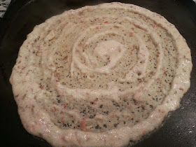 - If you wish, you can add some grated carrot,onion and coriander leaves on one side of the dosa and fry. Kids specially love this addition as its very colourful.